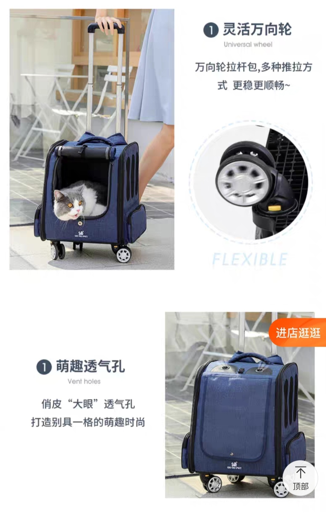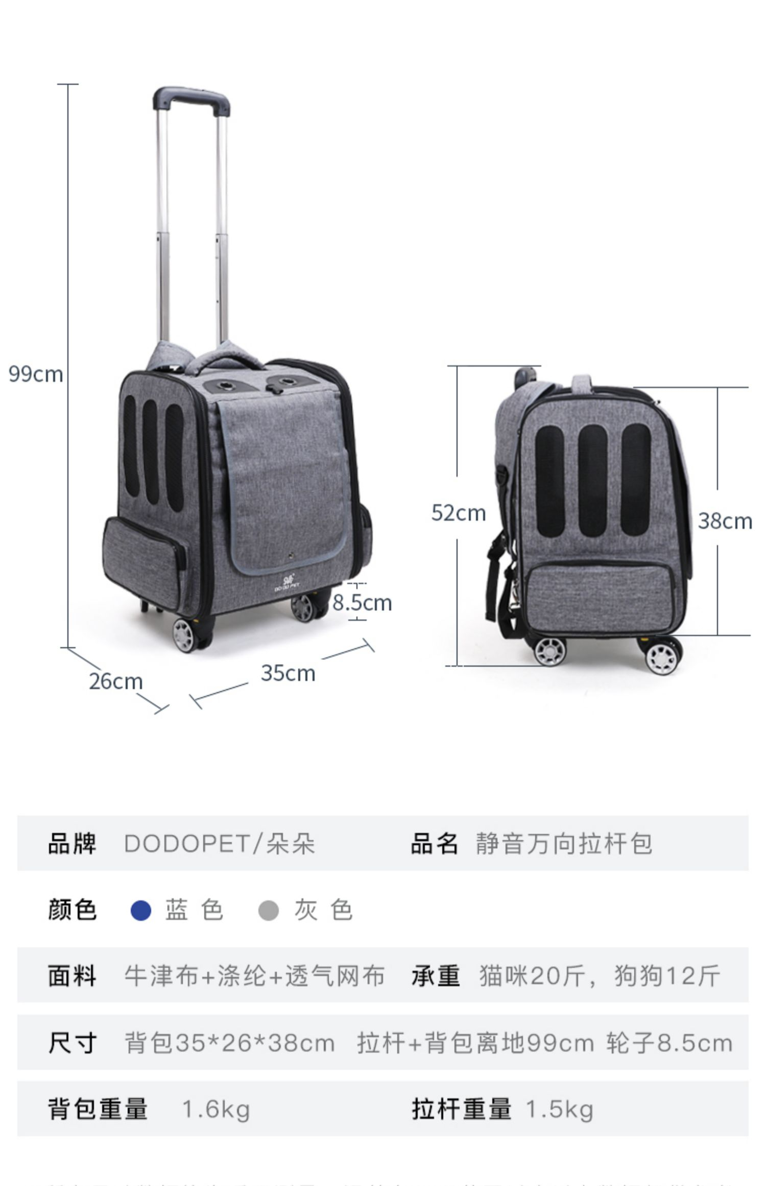 DODOPET宠物静音万向拉杆包(蓝色,灰色)(MAX 8kg狗狗 10kg猫)