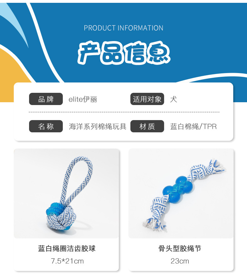 ELITE伊丽 宠物玩具棉绳 海洋蓝白系列