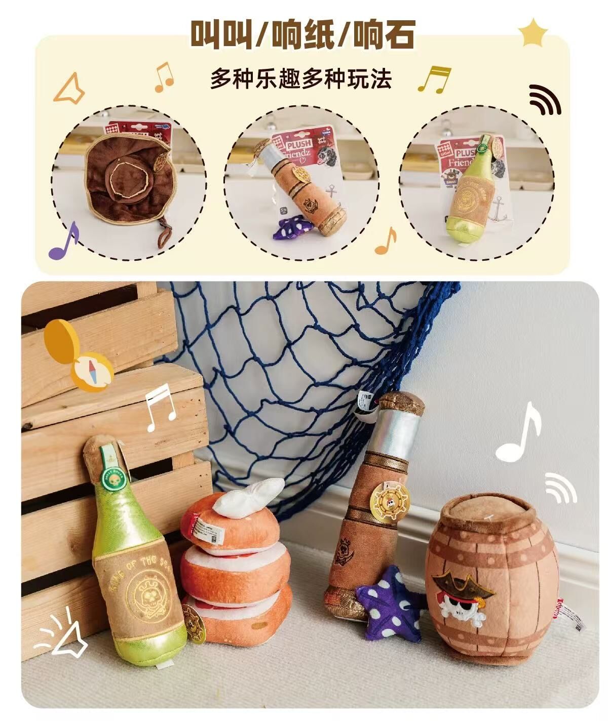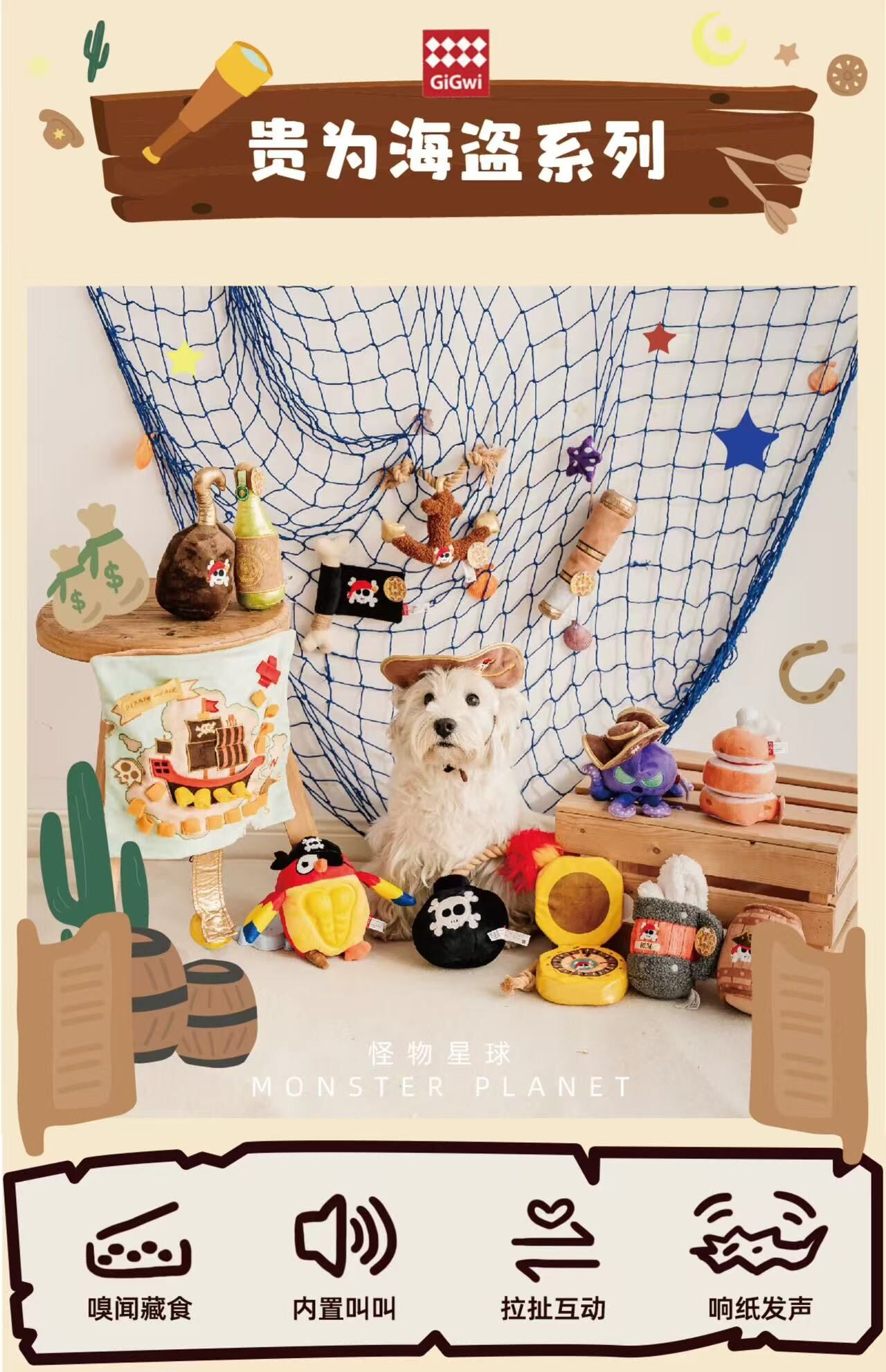 GIGIWI 狗狗发声响纸玩具 磨牙 海盗系列