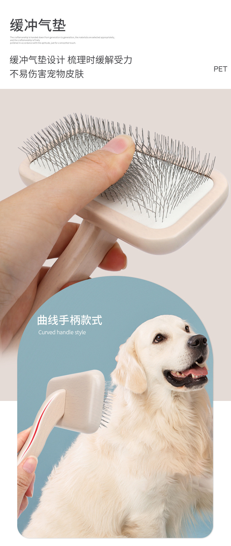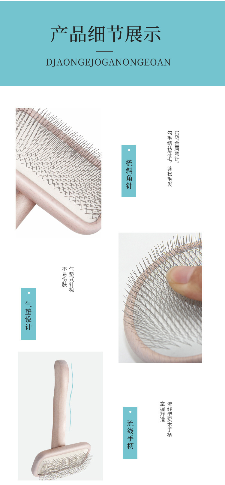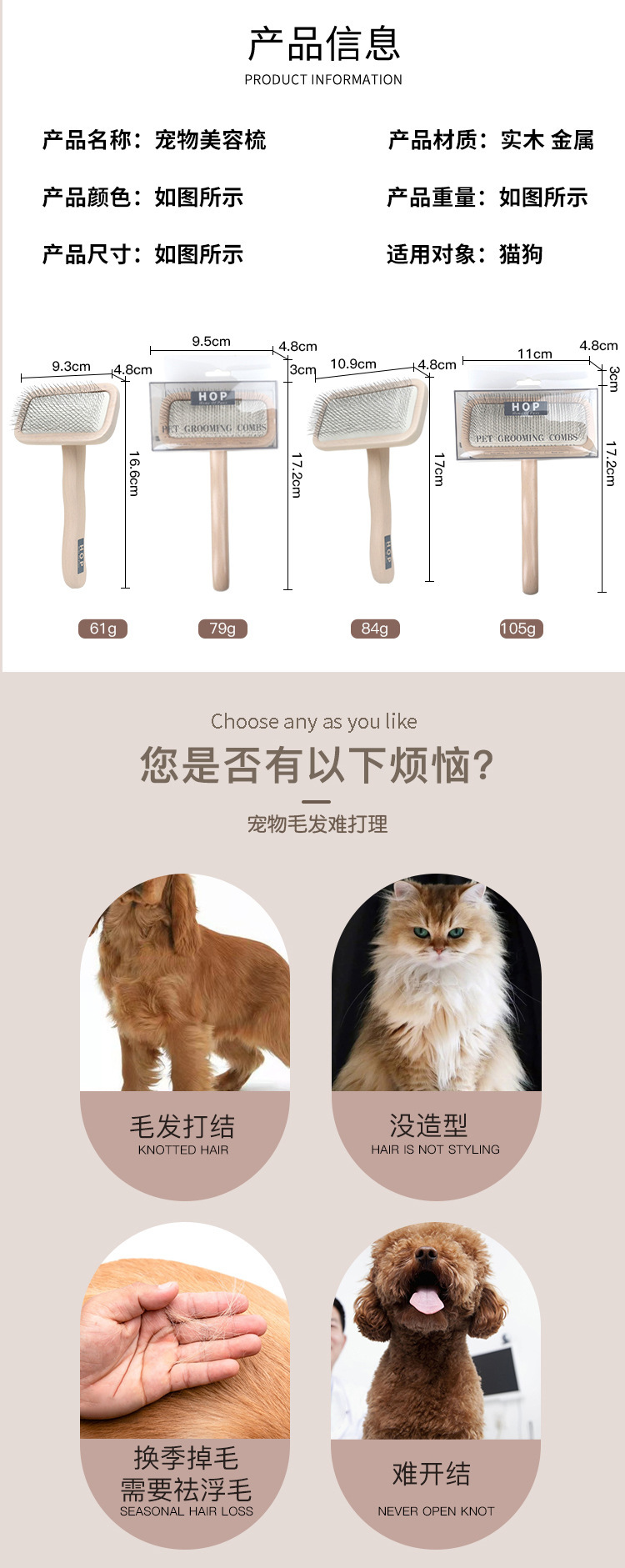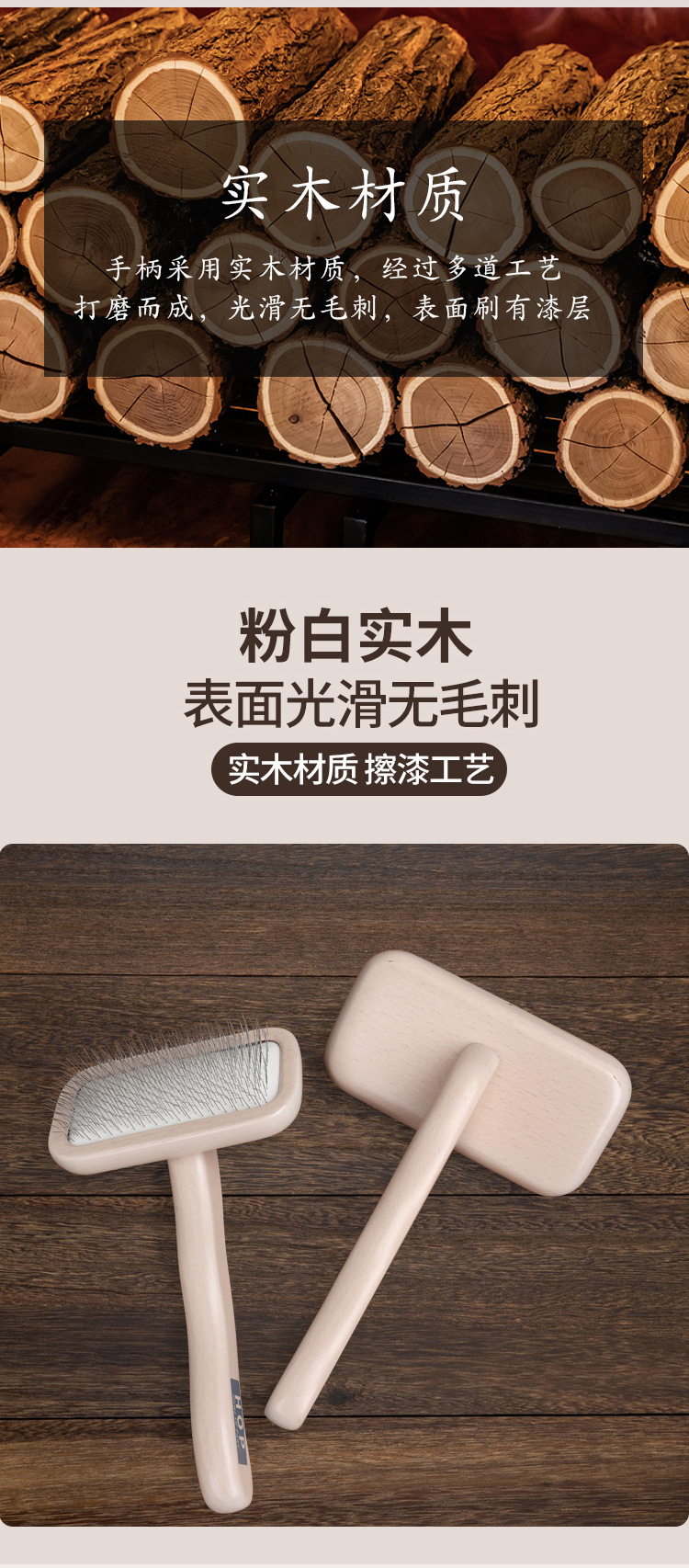 HOP实木宠物开结针梳 金属弯针 开结 去浮毛