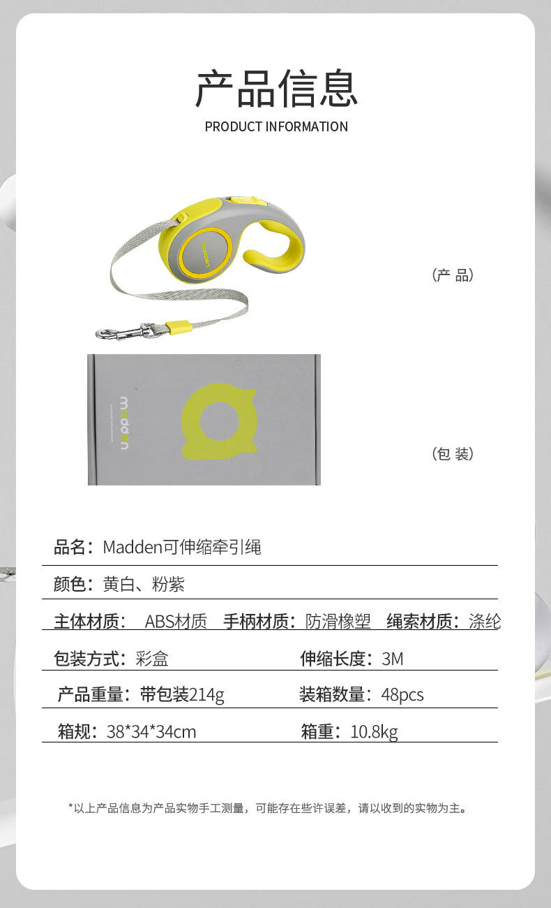 KIMPETS MADDEN麦豆 户外反光可申缩自动牵引绳 3meter