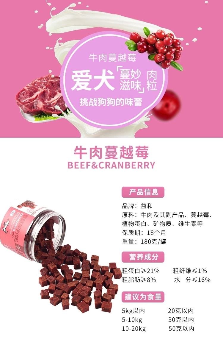益和 训练零食 蛋黄鸭肉粒 蔓越牛肉粒 170g