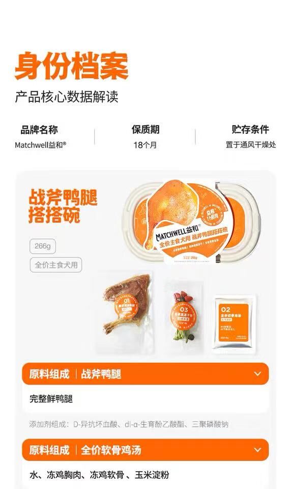 益和鲜时战斧鸭腿搭搭碗全价狗狗主食便当 搭配果蔬冻干 软骨鲜鸡汤 266G