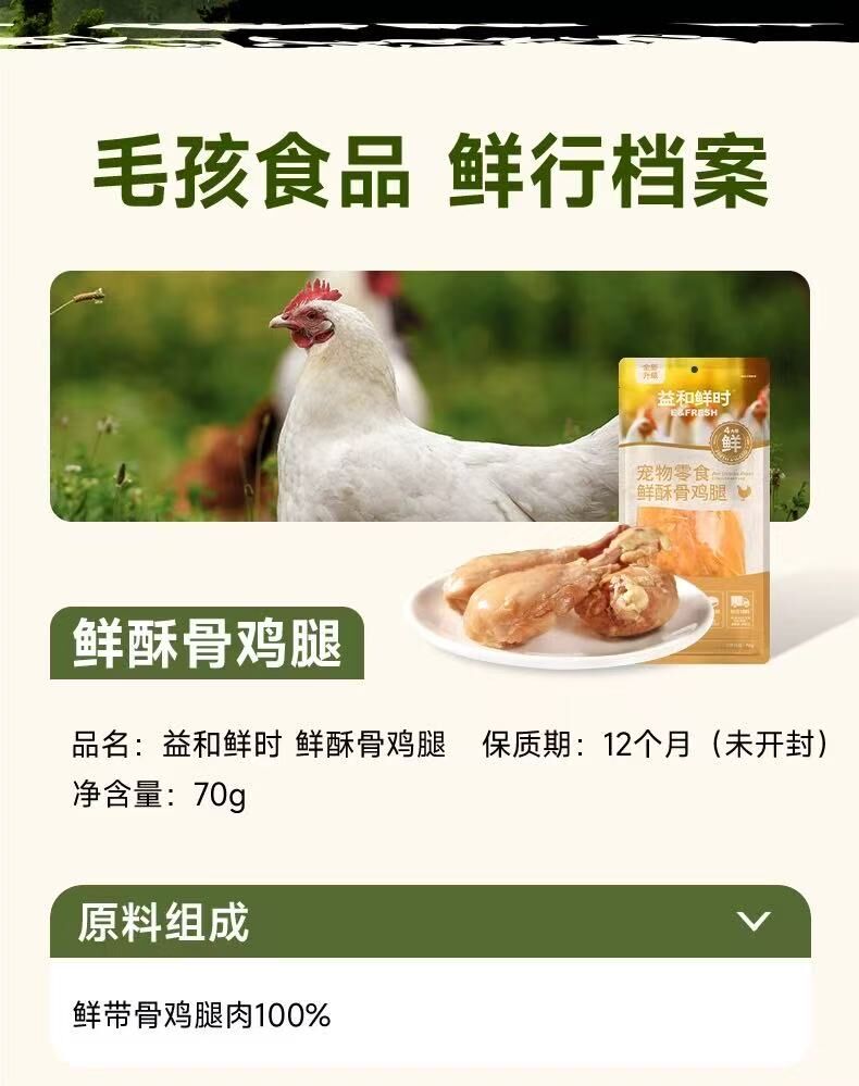 益和鲜时猫狗通用零食酥骨鸡腿 70g