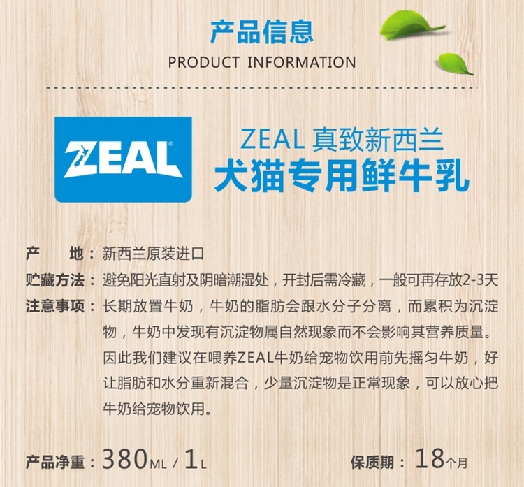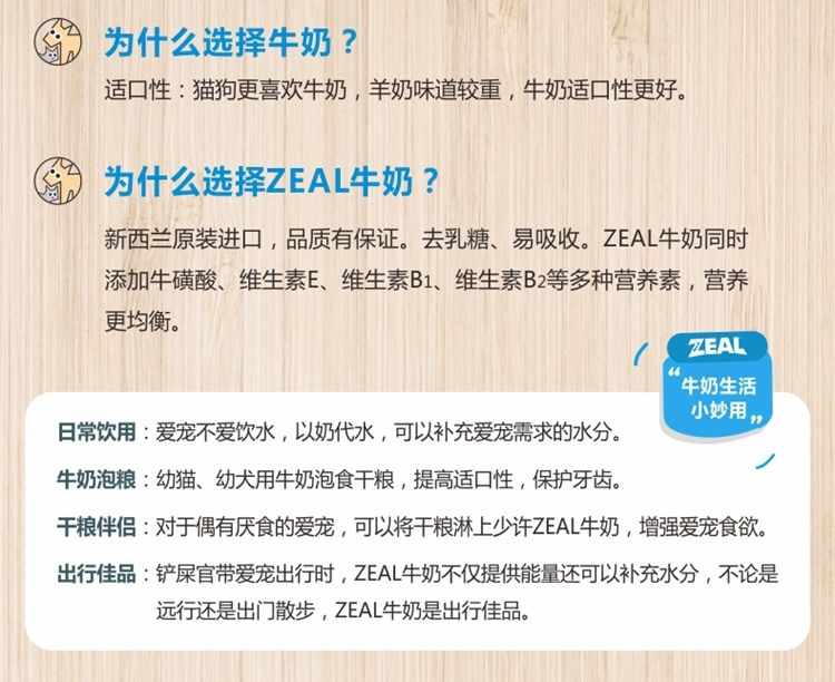 NEW ZEALAND ZEAL宠物牛奶 新西兰进口 零乳糖 1litre