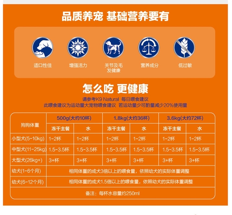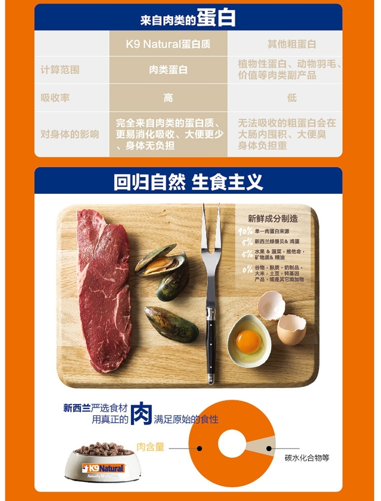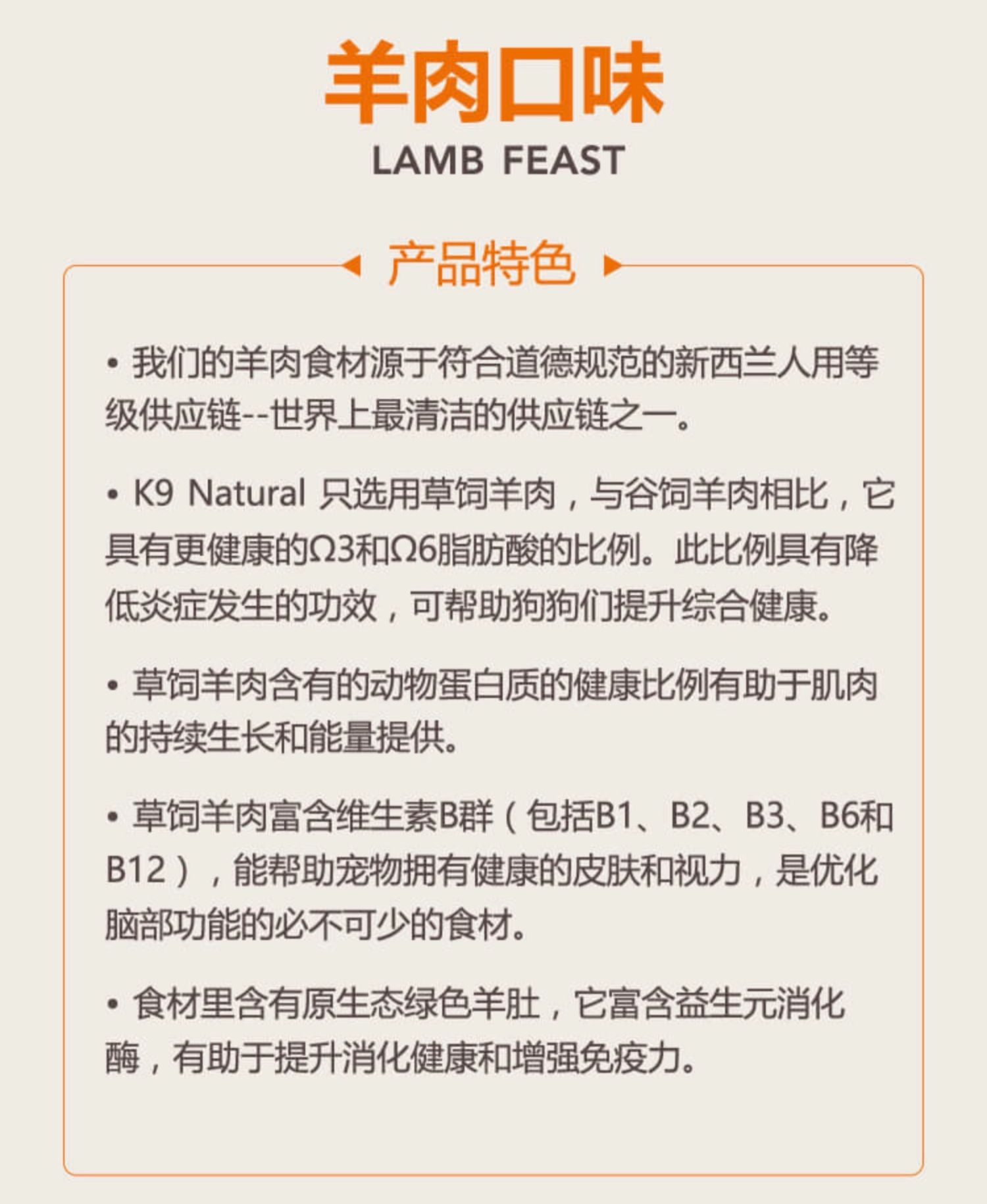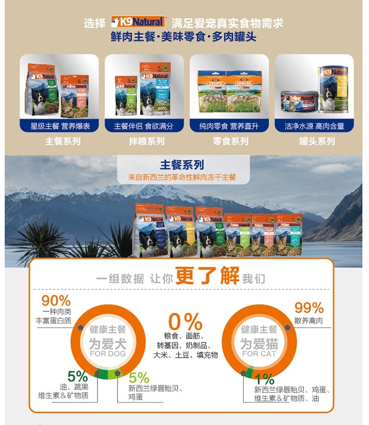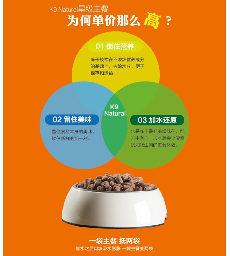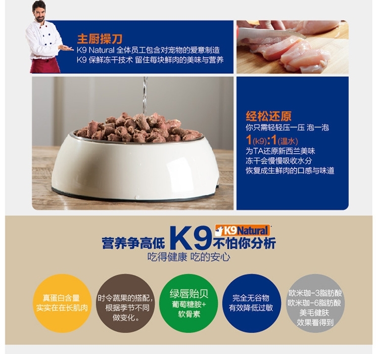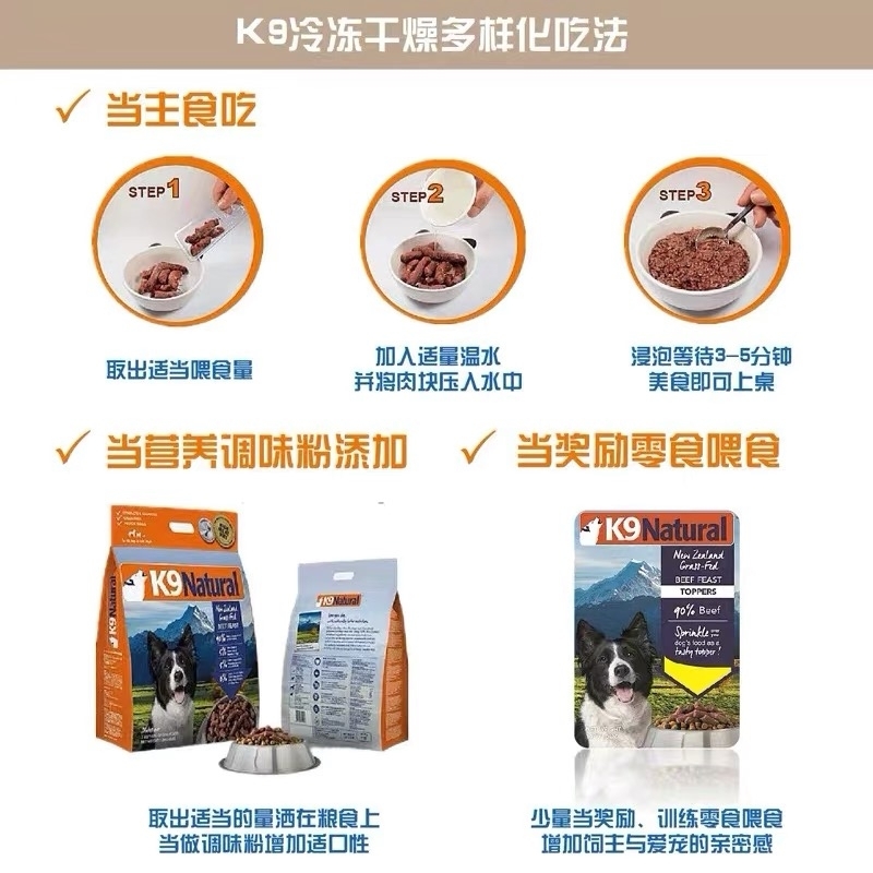 K9天然主食无谷冻干狗粮 90%超高含肉粮 强健狗狗体态 500gram