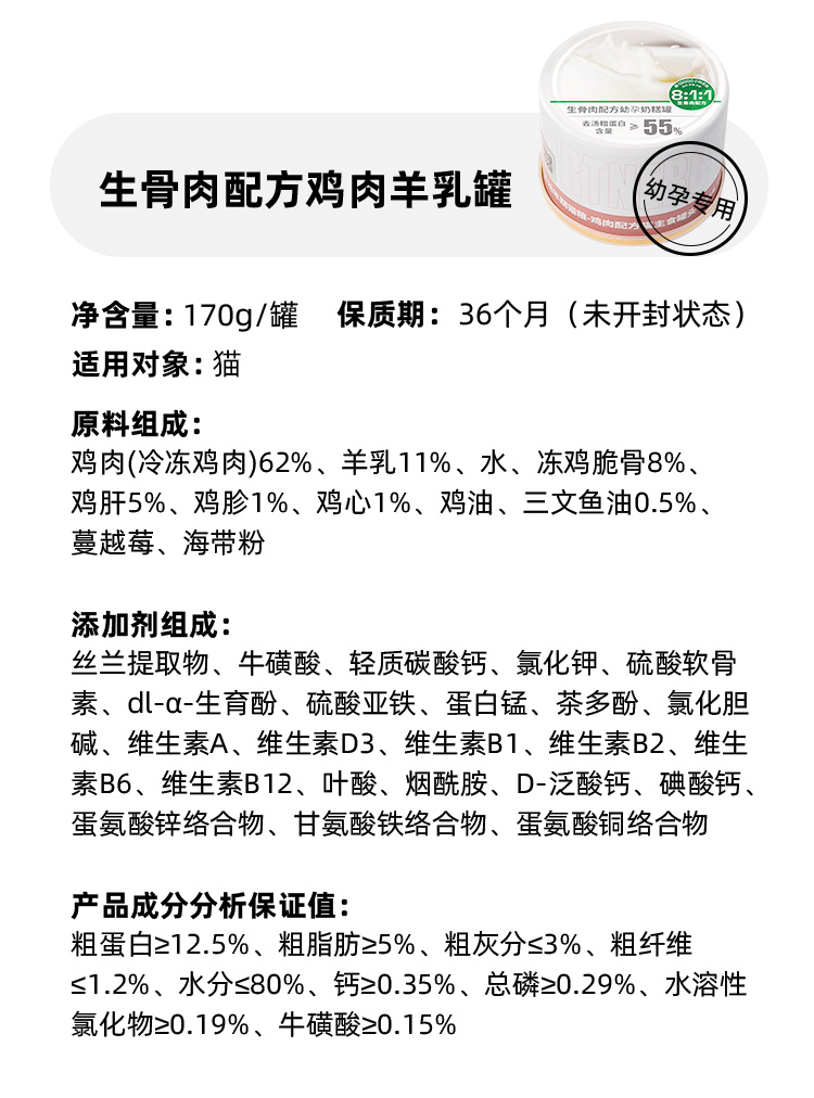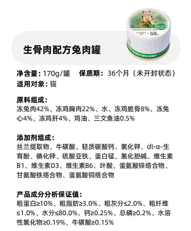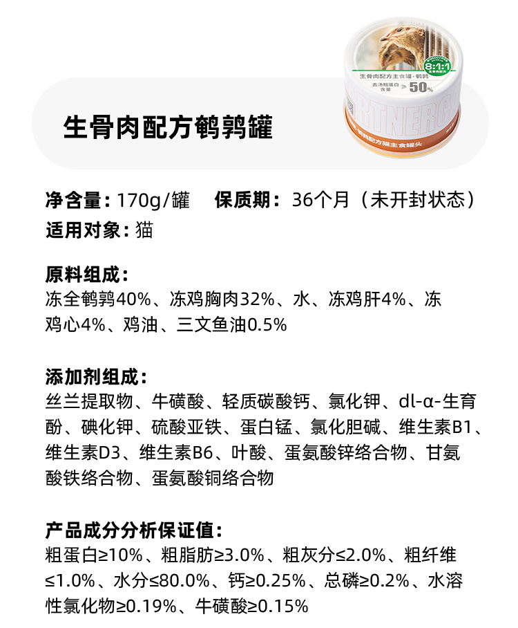 PARTNERPET帕特若尔 主食生骨肉猫罐 全年龄 170gram