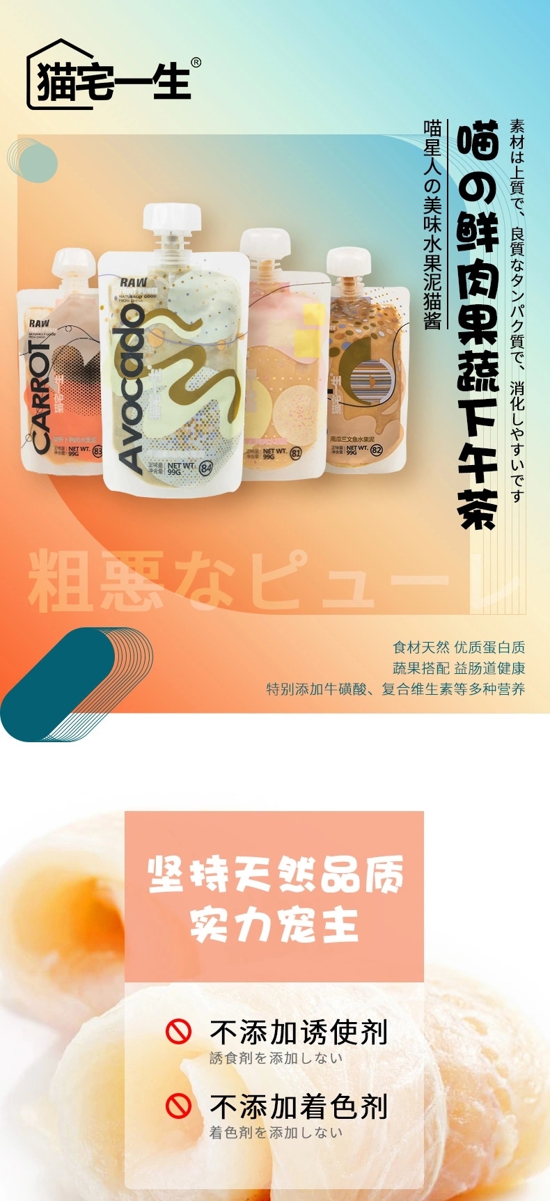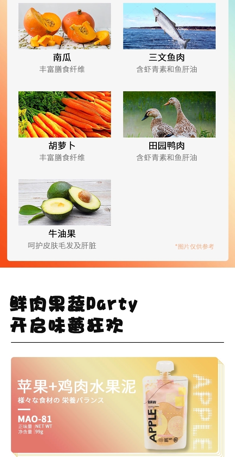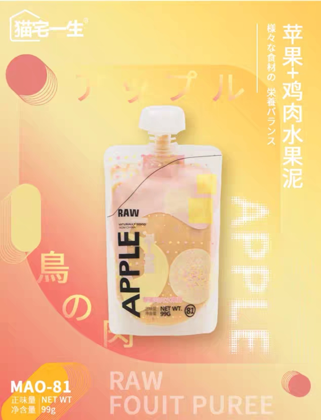 猫宅一生宠物犬猫水果泥 萝卜鸭肉水果泥/南瓜三文鱼水果泥/苹果鸡肉水果泥 99G