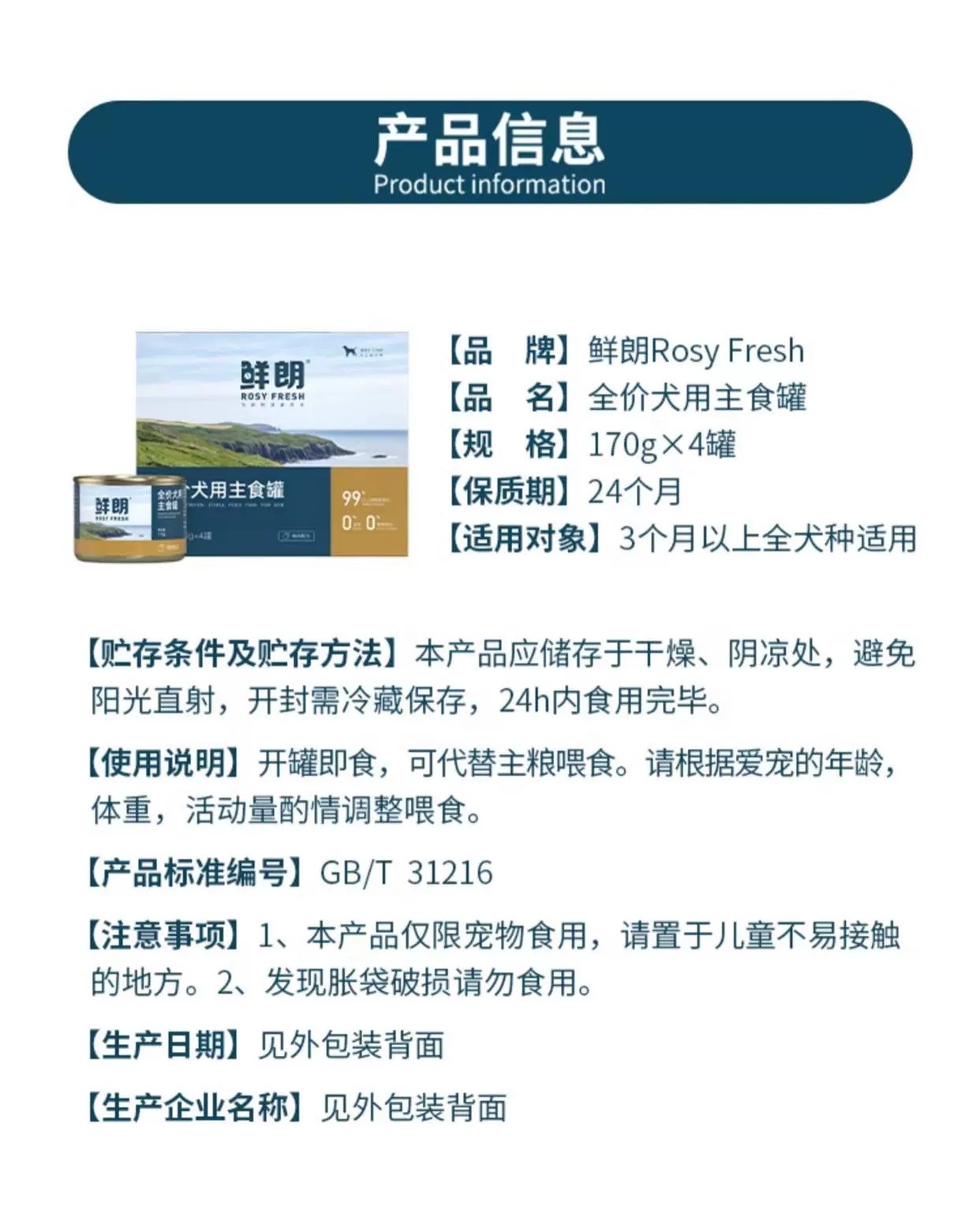 ROSY FRESH鲜朗 全价犬用主食罐 170g