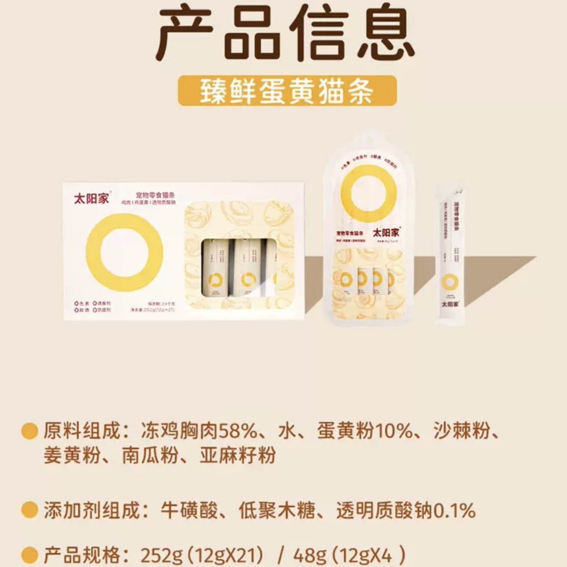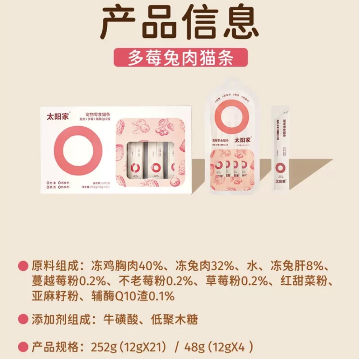 (猫用)太阳家宠物零食猫条 鱼·莓·蛋·奶 252g(12g*21)