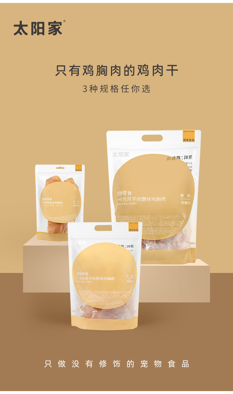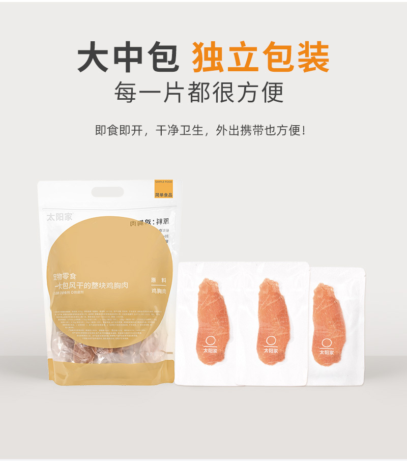 (新包装)太阳家宠物零食风干鸡肉干手工制作 (干·薄·脆)零添加 80g/210g/475g