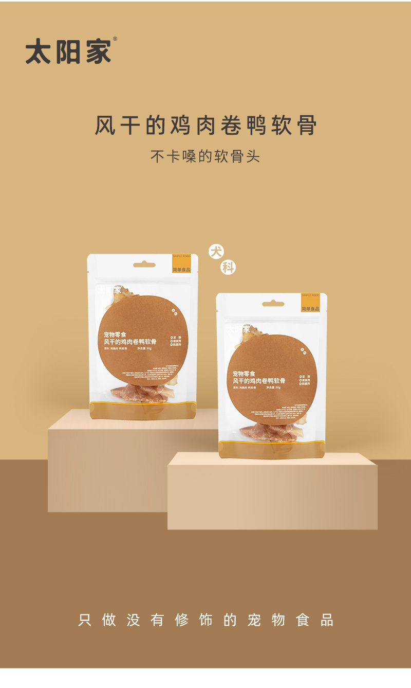 新包装新品)太阳家 零添加 手工制作 风干鸡肉卷鸡软骨/鸭软骨 60gram