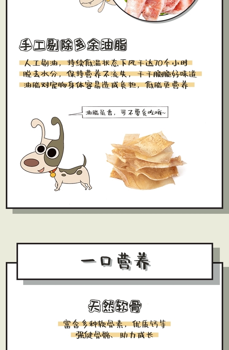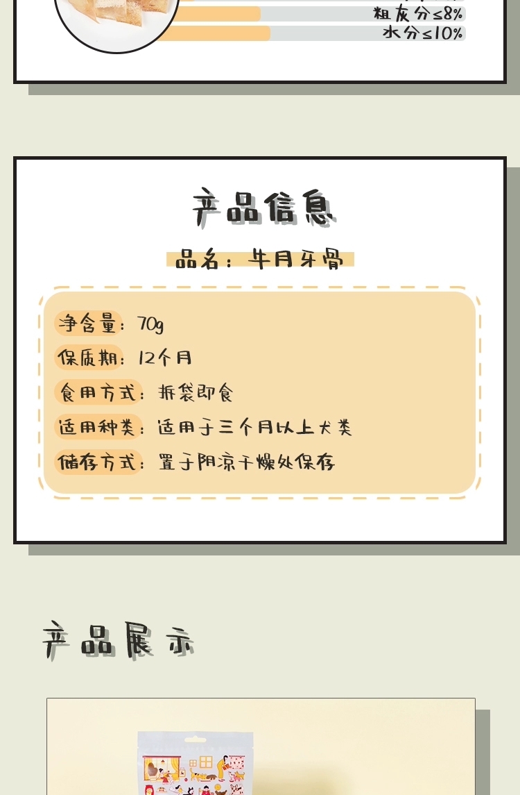 🐶喂食指南:本产品为零食,请根据宠物饮食习惯适当喂食,同时保证究物饮用水充足。